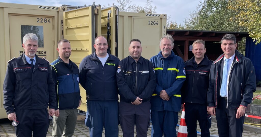 Heute am 19.10.2024 konnte, unter der Begleitung des THW-Landesverbandes Sachsen-Thüringen, Vertreter verschiedener Behörden und regionalen Einsatzorganisationen das Küchencontainersystem KCC 500 der Firma Kärcher Futuretech an den THW Ortsverband Grimma übergeben werden. Neben dem formalen Akt der Übergabe, wurde allen Gästen das System erläutert und praxisnah gezeigt. Das Interesse stieß auf große Resonanz aller Teilnehmer; insbesondere auch die Einsatzoptionen. Den Abschluss des heutigen Tages bildete das gemeinsame Essen, dass mit dem Küchencontainersystem KCC 500 zu bereitet wurde. Das Projekt „Küchencontainersystem KCC 500 (THW)“, wurde als Pilotprojekt für das Technische Hilfswerk durch die Landesvereinigung Sachsen Thüringen im Jahr 2021 initiiert, durch die THW-Bundesvereinigung e.V. zu 100% mit Fördermitteln finanziert und durch die Firma Kärcher Futuretech realisiert. Mit großer Unterstützung des THW Landesverband Sachsen-Thüringen konnten wir nun so, nach 3-jähriger Realisierungsphase, mit Übergabe am heutigen Tag das Projekt „Küchencontainer KCC 500“ abschließen.